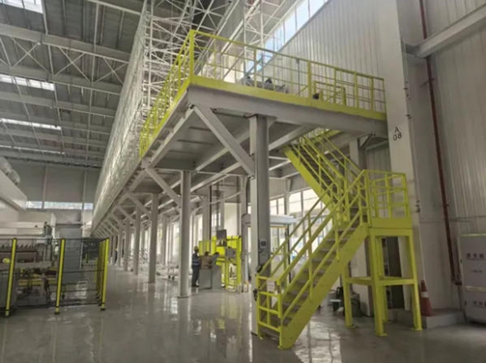 2025年7月30日该项目设备进厂安装,并于9月28日安调完成,端拾器立体库与冲压双臂高速线在同跨中进行建设,厂房跨度为36m,通过创新设计,利用二层平台采用双排主立柱支撑双边库结构,主立柱间距达5665mm,优化端拾器立体库占地面积,汽车行业首创冲压线边端拾器立体库二层平台采用双排主立柱支撑实现双边库新结构设计形式应用,空间利用率有效提升约60%。