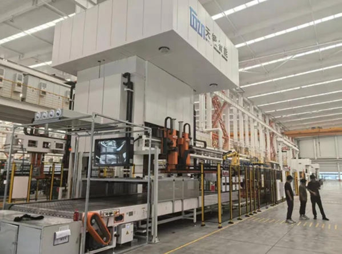 2025年10月,天锻成功向市场交付了1600T、2000T复合驱动热成形压力机。该系列高端装备的成功投产,推动了汽车高强度结构件(单门环、双门环、底板等)热成形生产迈入高效化、精密化、规模化的新阶段。设备搭载高精度位置与压力双闭环控制系统,可自如应对复杂热冲压成形工艺的运动模式需求,设备兼具油压机的优良成形品质与机械压力机的高生产效率两大优势。依托机械、电气、液压深度一体化集成设计,实现数字化、信息化、智能化与自动化的全维度协同,既保障了高强度结构件生产的稳定性与一致性,更通过全流程智能管控降低了生产能耗与人工成本。